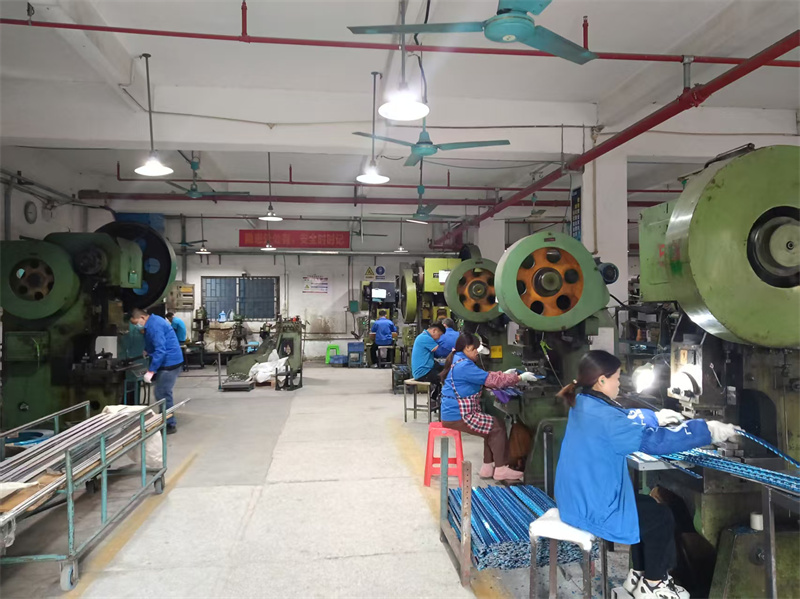 2、四大生產(chǎn)車間:沖壓?jiǎn)螞_車間里,沖床設(shè)備精細(xì)化布局,以精準(zhǔn)、安全、穩(wěn)步的節(jié)奏高效運(yùn)轉(zhuǎn),優(yōu)質(zhì)五金板材在沖床的精準(zhǔn)沖裁下,一步步蛻變成合頁(yè)胚體;連續(xù)模車間的默契配合,實(shí)現(xiàn)合頁(yè)配件的高效批量生產(chǎn),保障訂單交付效率;模具車間里,技術(shù)師傅專注打磨定制化合頁(yè)模具,每一個(gè)尺寸參數(shù)都反復(fù)校準(zhǔn),確保合頁(yè)開合順滑、經(jīng)久耐用;裝配車間內(nèi),家人們規(guī)范操作、分工協(xié)作,將合頁(yè)的每一個(gè)零部件精準(zhǔn)組裝,全程井然有序。