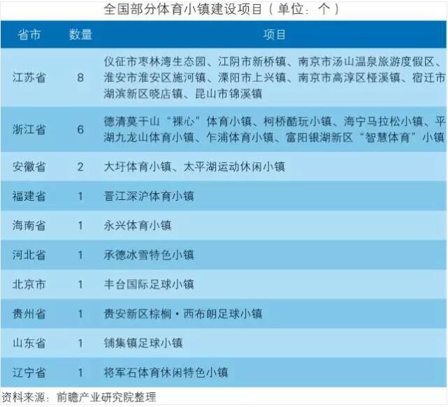 根據(jù)浙江省培育100個特色小鎮(zhèn)的目標(biāo),截至2016年5月,浙江省政府已經(jīng)公布了兩批79個省級特色小鎮(zhèn)創(chuàng)建對象、51個省級特色小鎮(zhèn)培育對象中,以體育產(chǎn)業(yè)為主體的特色小鎮(zhèn)就有5個,包括德清莫干山“裸心”體育小鎮(zhèn)、柯橋酷玩小鎮(zhèn)、海寧馬拉松小鎮(zhèn)、平湖九龍山體育小鎮(zhèn)、乍浦體育小鎮(zhèn)。