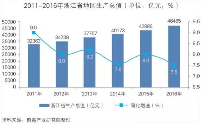 浙江省是國家經(jīng)濟(jì)大省,擁有較強(qiáng)的經(jīng)濟(jì)實(shí)力,據(jù)2016浙江省國民經(jīng)濟(jì)和社會發(fā)展統(tǒng)計(jì)公報顯示,浙江省全年人均GDP為83538元元,增速為6.7%,為消費(fèi)提供了強(qiáng)大的基礎(chǔ)。