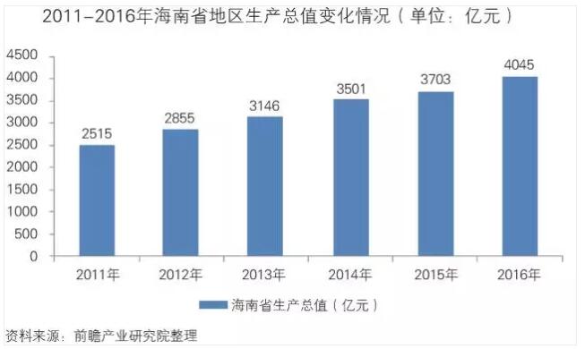 2016年全省地區(qū)生產(chǎn)總值4044.51億元,按可比價格計(jì)算,比上年增長7.5%。2011-2016年,海南省的GDP保持較快增長態(tài)勢,為體育發(fā)展事業(yè)提供了堅(jiān)實(shí)基礎(chǔ),有利于體育產(chǎn)業(yè)在海南地區(qū)發(fā)展。
